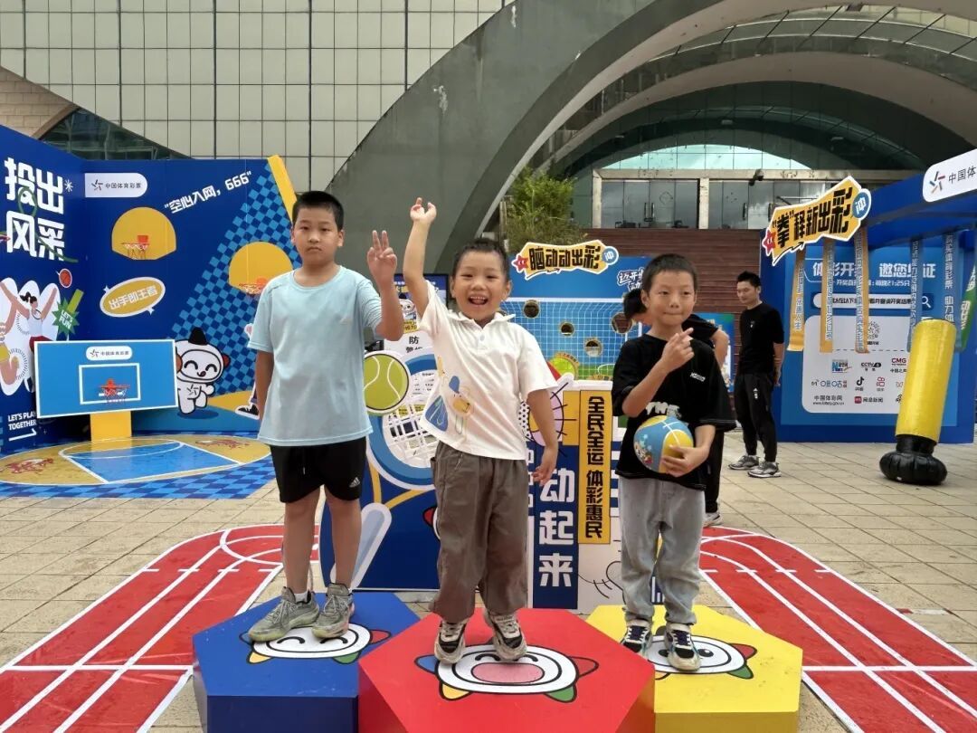 活动现场气氛热烈、人气高涨。多个互动打卡区成为市民的“欢乐聚集地”,大家纷纷参与“投出风采”(篮球)、“‘拳’释新出彩”(拳击)、“‘跳’出精彩”(跳高)、“脑动动出彩”(足球)等趣味挑战。市民在轻松愉快的氛围中尽情挥洒汗水,既体验了专业运动与趣味游戏的完美融合,也在互动中感受到了运动的魅力与公益体彩的责任温度。